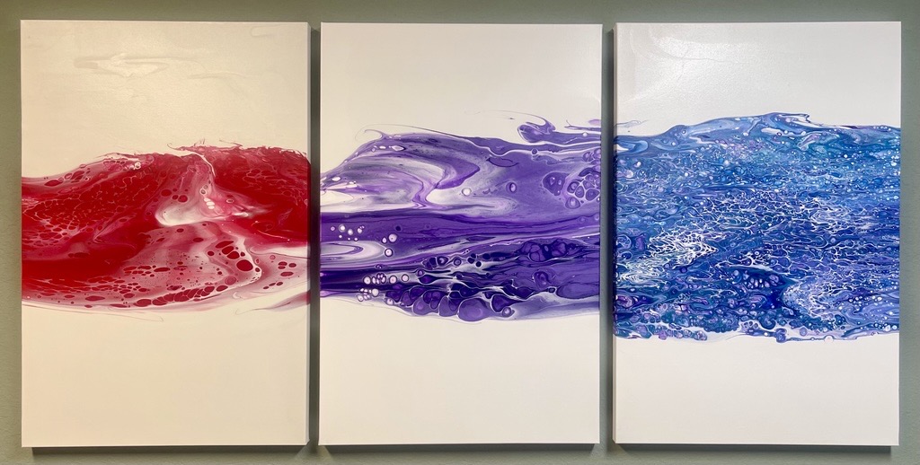 Medium: Acrylic on canvas Size: 3 - 2 foot x 3 foot x 1 inch canvases Finish: Varnished Topcoat